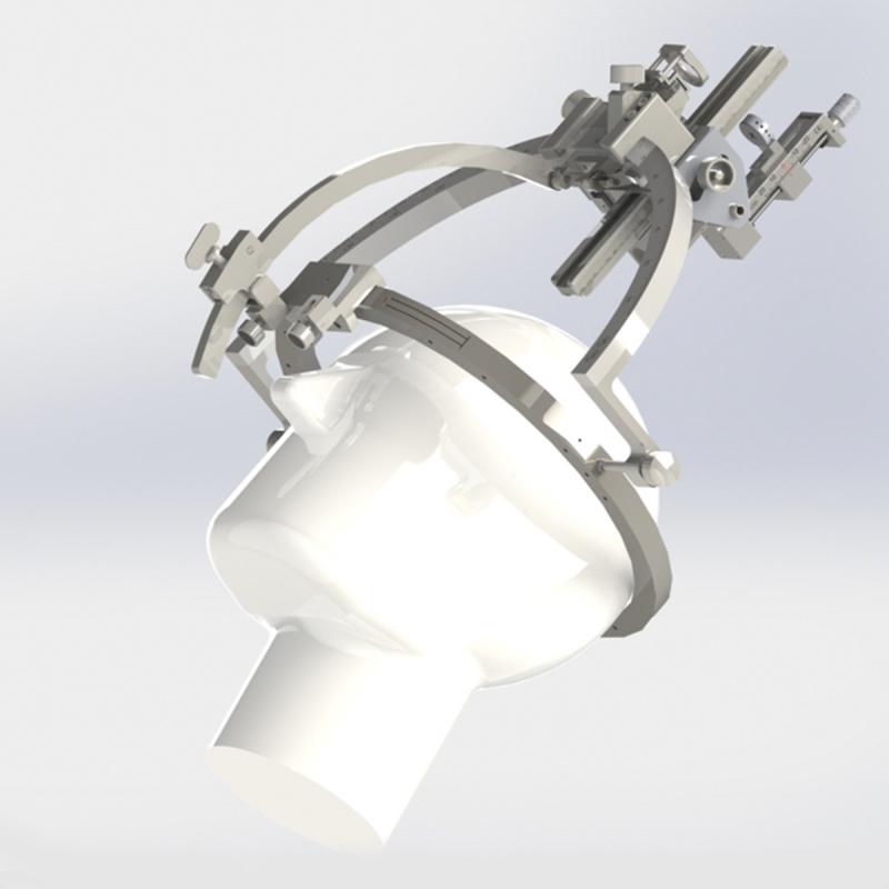 Los procedimientos en neurocirugía funcional moderna son ahora tan mínimamente invasivos que tienen que llevarse a cabo con un alto grado de precisión. Los sistemas de estereotaxia de inomed son impresionantes por su absoluta fiabilidad, precisión y estabilidad en su funcionamiento general. Una de las cualidades de los sistemas de estereotaxia de inomed es que el trabajo del cirujano y del equipo quirúrgico se simplifica porque los sistemas son muy fáciles de utilizar. Hasta la fecha, no existen sistemas de estereotaxia más convenientes y más precisos que los productos de inomed. Esto se debe a varias razones. El sistema basado en anillo usado por inomed para estereotaxia proporciona la máxima estabilidad desde el principio. Las propiedades físicas básicas de un anillo son superiores a todas las demás formas geométricas básicas en términos de resistencia y tolerancia. Específicamente aquí, es decir, en el diseño básico de la estructura del sistema, las fuentes más comunes de error se evitan desde el principio. Del mismo modo, los sistemas de estereotaxia de inomed son los únicos sistemas en todo el mundo con un simulador de la diana avanzado. Sólo inomed hace que sus sistemas de estereotaxia sean aptos para la práctica. Con el simulador de la diana de inomed, la planificación teórica se puede medir de acuerdo a la práctica geométrica. Hasta hoy, no hay mejor manera de garantizar la máxima seguridad del paciente en combinación con una precisión óptima. Además, el uso de los resultados del simulador de inomed, tiene una segunda ventaja práctica clara, que es el hecho de que al utilizar el sistema como se pretende, es fácil comprobar que los instrumentos utilizados están funcionando correctamente. Ningún otro sistema en el mercado es más capaz de proporcionar este nivel de seguridad y diseño. Con razón, podemos decir que los sistemas de estereotaxia de inomed establecen la referencia absoluta en términos de precisión.